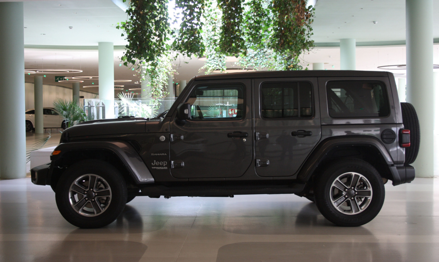 Yes — but not in the traditional sense. The Wrangler Sahara features a modular roof system with removable panels and a fold-back soft top. You can remove individual roof sections for a targa-style opening, fold back the entire soft top for a fully open cabin, or keep everything sealed for highway comfort. The process is manual rather than electric, which takes a few more minutes than a sports cabrio — but the result is a far more open, immersive experience. No pillars, no frame, just sky.