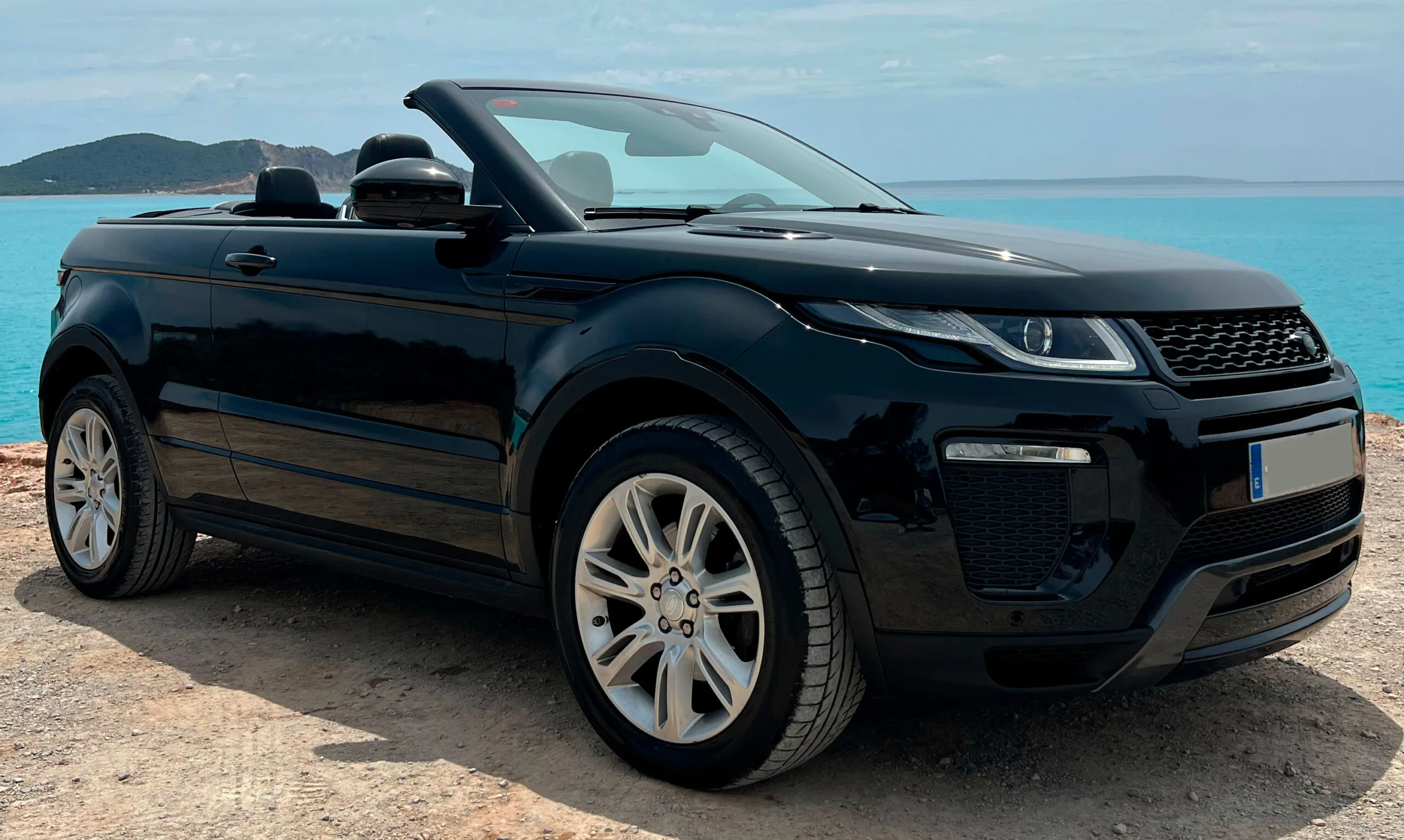 The core audience: couples or a group of three who want an open-top car with genuine presence but do not want a low sports car. The Range Rover Evoque Cabrio rental Ibiza gives you the wind-in-hair freedom of a convertible from a raised, commanding driving position. You collect through our airport delivery service, drop the roof, and every transfer for the week becomes an experience — villa to beach, restaurant to marina, market to viewpoint.