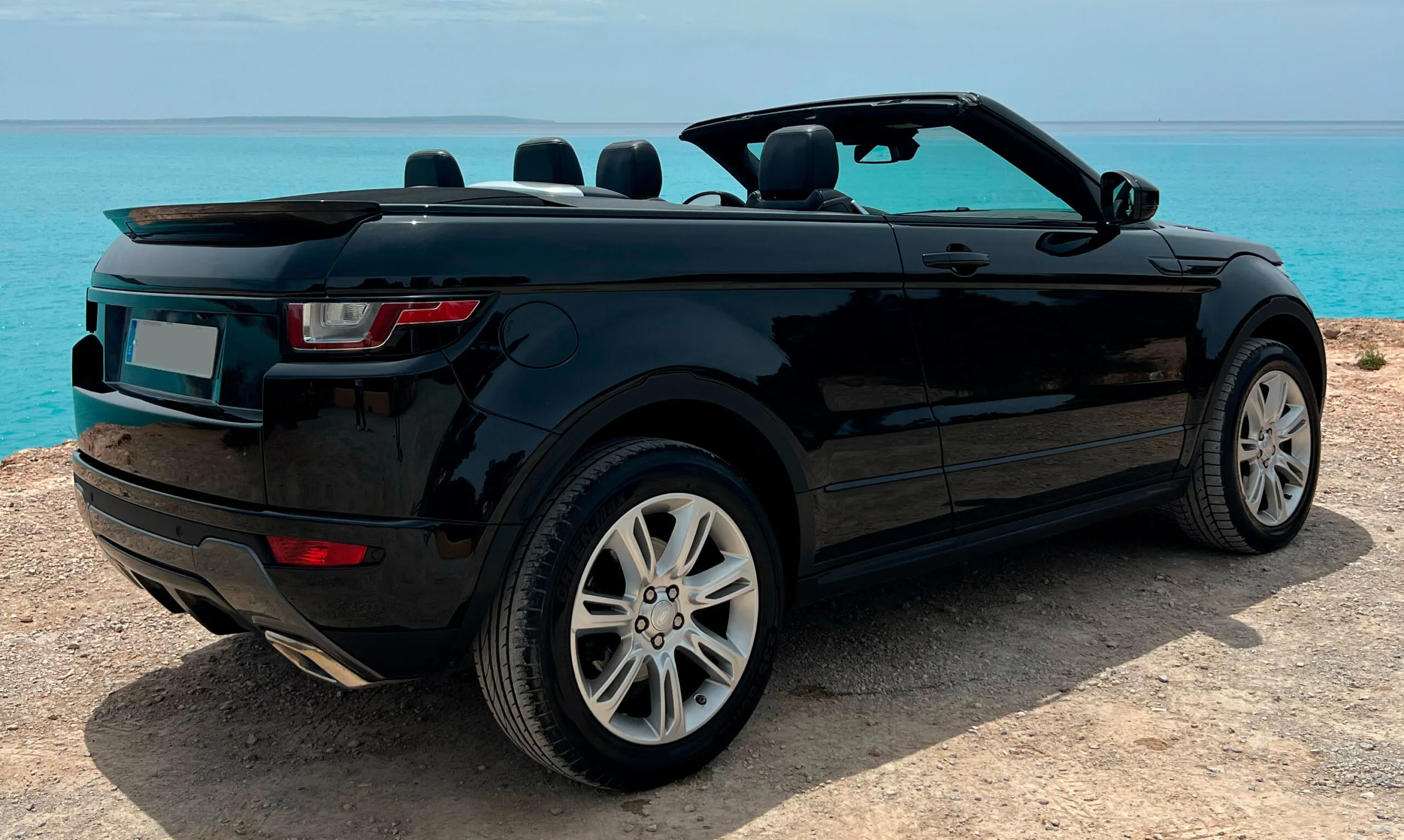 The concept sounds improbable until you drive it on Ibiza. Drop the roof, climb to a viewpoint on a dirt track, watch the sunset from an elevated position that no sports car can match — and do it all with the wind in your hair. The Evoque Cabrio bridges two categories that every other car treats as mutually exclusive: convertible and SUV. On this island, that combination makes more sense than almost anywhere else.